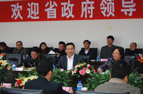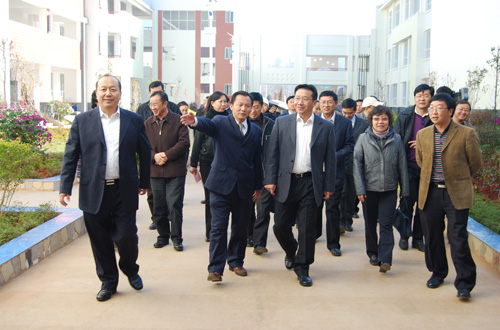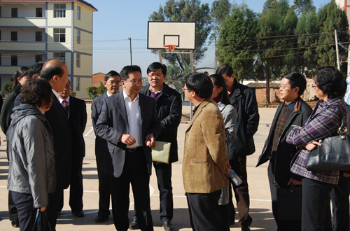 上午,高峰主委一行在昆明市委常委、昆明市委统战部金志伟部长和禄劝县委、县人大、县政府、县政协领导陪同下,视察了按照标准化学校规范刚刚建成投入使用的禄劝民族小学、县职业中心和正在整体搬迁建设中的县妇幼保健中心,召开座谈会听取了县委书记孔贵华同志关于全县2009年经济社会发展和教育卫生工作的汇报。针对禄劝县作为少数民族县、革命老区县、山区农业县、国家扶贫开发工作重点县、资源大县和经济小县的基本县情和发展情况以及下步发展思路,高峰主委对禄劝县的工作和取得的进步以及勒紧裤带办教育的作法予以充分肯定,要求禄劝县下一步工作要以中央经济工作会议精神为指导,并作出三点具体指示:一要借助资源优势,着力推动经济发展;二要借助政策优势,着力解决民生问题;三要借助区位优势,着力扩大开放。对于禄劝县教育、卫生方面存在的问题和困难,高峰主委在其副省长职责范围内“现场办公”,给予了项目和资金上的支持,为禄劝县办实事、解难事,切实解决实际问题。