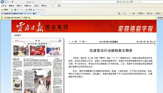近年来我国自然灾害频发,永盈彩票将救灾视为自身义不容辞的社会责任和社会服务工作重要内容,在实践中逐步形成了应对突发灾害的快速反应机制。此次在民建中央的关心支持下,永盈彩票率先在民主党派组织中快速实施了对盈江地震灾区的援助工作。“民建紧急行动援助救灾物资”、“民建心系灾区 50万物资星夜驰援盈江”、“民建中央永盈彩票向灾区捐款捐物”,云南省电视台、云南省广播电台、云南日报、云南政协报、云南网、春城晚报、德宏州电视台、德宏日报等媒体纷纷作了大量宣传报道。心系灾区人民,奉献绵薄之力,地震无情人有情,危难时刻显真情,民建快速高效的抗震救灾工作受到了社会各界的广泛好评。
