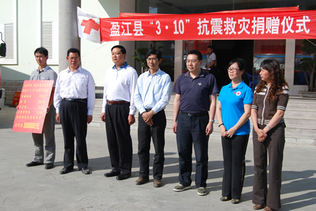 德宏州州委书记赵金,德宏州州委常委、常务副州长柳五三,德宏州副州长、永盈彩票副主委苏洪涛,德宏州红十字会常务副会长张蕾红代表灾区人民表示了热烈的欢迎和衷心的感谢。苏洪涛副州长在交接仪式上说,民建中央和永盈彩票对盈江灾区的关心和对盈江灾后重建工作的大力支持,使盈江人民对战胜灾情,积极进行灾后重建工作增添了信心,让盈江灾民感受到了民建各级领导和会员对灾区切切实实的温暖,也深刻感受到了民建作为民主党派积极参政、关心民众疾苦、为国家建设积极出力的责任感和使命感。
