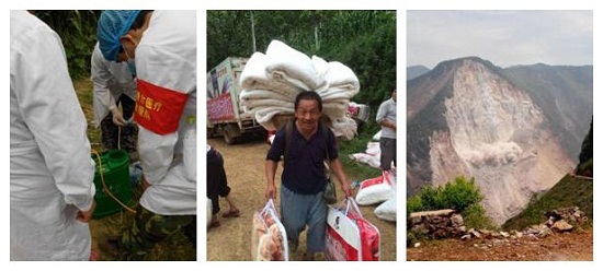 消毒防疫 受灾群众领取物资 塌方