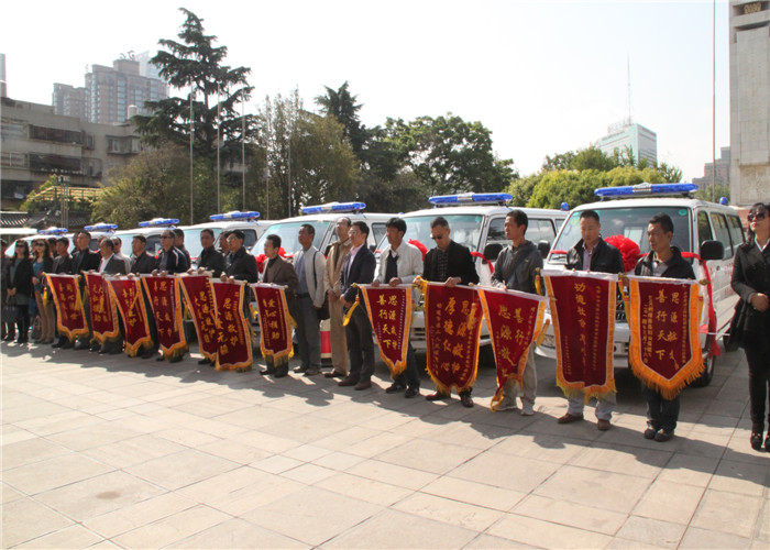 仪式上,保山市昌宁县人民医院、大理州漾濞彝族自治县中医院、楚雄州武定县人民医院、普洱市澜沧县第二人民医院、昭通市第二人民医院、曲靖市会泽县中医院、红河州绿春县妇幼保健院、西双版纳州勐腊县中医院、丽江市永胜县妇幼保健院、临沧市双江县民族中医院等10所医院分别接受了救护车捐赠,并向“思源工程”、“芭莎公益慈善基金”赠送了锦旗。