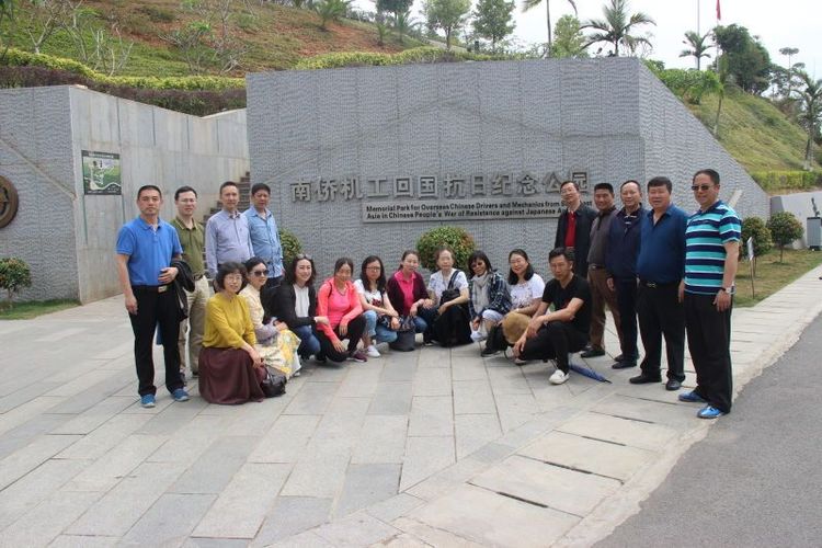 4月21日上午,参加此项活动的专家、教授怀着敬仰的心情来到了位于畹町的“南侨机工抗日纪念碑”缅怀当年怀着赤子之心投入抗日大业的三千余名南侨机工。高达9米的纪念碑高悬云空,直指苍天,气势雄伟,俯瞰着当年抗日的最后一条生命线——滇缅公路。参加活动的专家在纪念碑前敬献了花圈和鲜花,以表达对当时志愿回国援助抗战的“南洋华侨机工回国服务团”3192人的深深敬仰。当年,抗日战争最困难的时刻,南侨机工在得知祖国需要大量汽车司机和修理人员之后,由侨首陈嘉庚发出了“南侨总会第六号公告”,号召华侨中的年轻司机和技工回国参加抗战,与国家一同战斗。众多爱国华侨踊跃报名,有的甚至放弃了当时的优越条件,他们中的上千人更是把宝贵的生命永久留在了这条抗日生命线上……
