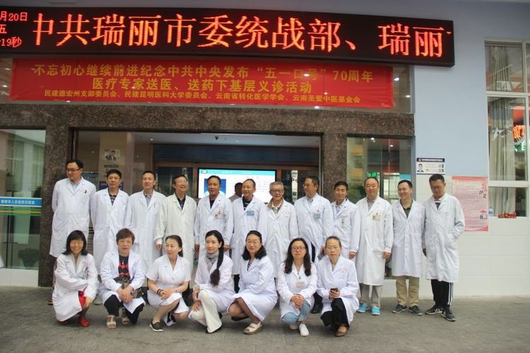 恰逢“五一讲话”发表七十周年之际,民建昆医大委员会为深入贯彻落实党的十九大精神,根据永盈彩票2018年工作要求,继续深入开展“不忘合作初心,继续携手前进”专题教育活动,充分发挥民建特色和优势,整合资源多措并举, 开展组织联建、活动连谋、民生联帮活动。4月20日,在昆明医科大学统战部牵头下组织的2018年下乡送医送药和大型支教活动在瑞丽市拉开帷幕。昆明医科大学附属第一、第二、第三医院以及云南省第一人民医院、昆明圣爱中医馆心血管、肿瘤、妇产、内分泌、风湿免疫科、肛肠科、骨科、普通外科、呼吸科、影像科、心脏超声、中医科、针灸科以及神经内外科、儿科和药剂科等方面的24位专家、教授参与,包含了民建、民盟、农工、致公等民主党派人士。活动为瑞丽市群众义诊1000余人次,以专题讲解方式和开展手把手教学活动,受到了基层医生和边疆各族群众的一致欢迎。