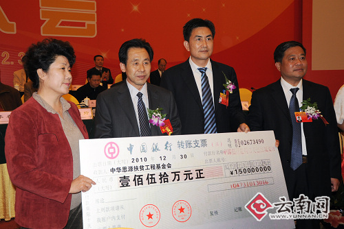 庆典仪式上,昆明市福清商会永久名誉会长薛经官向中华思源工程扶贫基金会捐款150万元。该款项将专门用于支持云南省和昆明市教育事业发展。