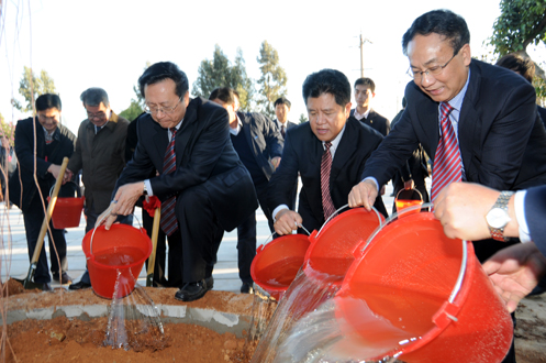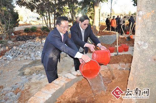 全国人大常委会副委员长、民建中央主席陈昌智为“云南民建林”树木浇水