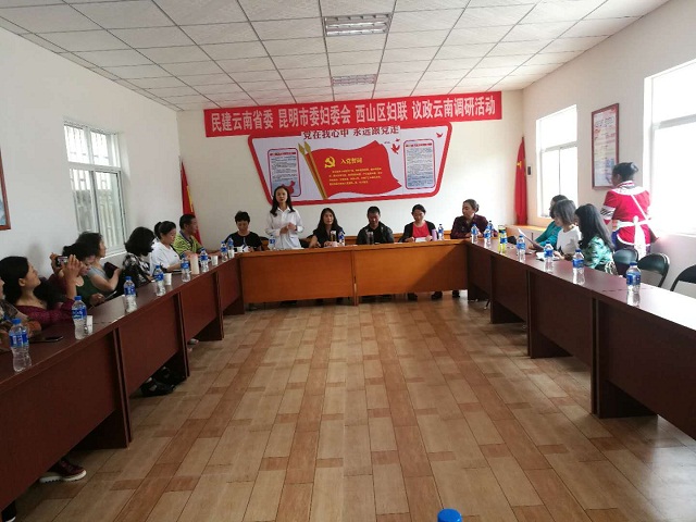 调研中,团结办事处副主任、街道妇联主席余卫红详细介绍团结办事处妇女劳动力转移就业工作的情况;雨花社区、大墨雨村的相关负责人分别介绍了当地妇女就业、培训等情况;“新村民代表”吴晨(女,北京市人,居住大墨雨村20年)介绍了她的农村公益项目“昆明市西山区永续动力城乡社区服务中心”详细情况;返乡青年苏智芝(系土生土长的大墨雨村人)介绍了自己大学毕业到返乡创业,从办民宿到安置更多的本村妇女就业的整个过程。会上,参会人员通过互相交流,肯定大墨雨村妇女就业、创业、产业发展等方面取得的成就,同时对发展存在的问题和下一步解决问题的措施提出意见和建议,调研气氛活跃。