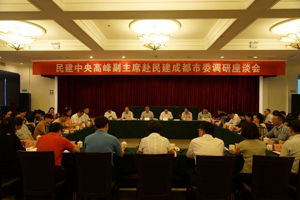 5月19日,高峰副主席赴民建成都市委机关调研慰问,并与民建成都市委、基层组织代表座谈。座谈会由民建中央副主席、民建四川省委主委、四川省人大常委会副主任