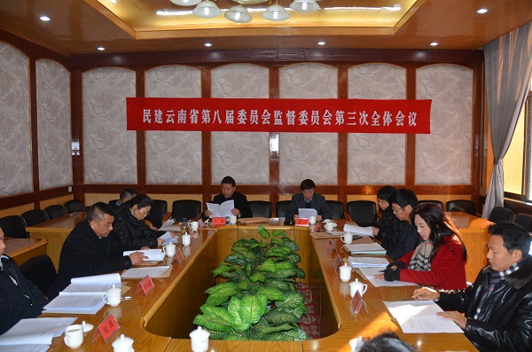 会议传达学习了民建全国会内监督工作研讨会议精神和中国民主建国会第十届中央监督委员会第三次全体会议精神,莫非作了题为《积极开展会内监督努力增强自身建设能力》的民建云南省第八届委员会监督委员会2014年工作报告。报告从六个方面认真总结了2014年省监督委员会的工作:一是认真学习,增强会内监督意识;二是开好届中述职评议会,推进会内监督机制建设;三是依托民主生活会,提升领导班子工作能力;四是深入基层调研,监督地方组织换届;五是做好日常工作,履行好监督职责;六是认真总结经验,努力提高会内监督能力。同时提出了2015年的工作意见:一是以宣传教育促进会内监督工作深入开展;二是要积极探索和不断完善监督工作机制;三是要健全领导班子谈心会制度和民主生活会制度;四是要积极探索对地方组织和省直属基层组织活动的监督;五是要加强监督队伍建设。