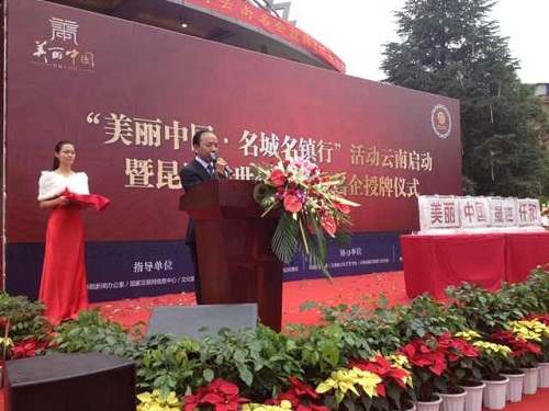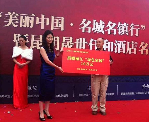 在启动仪式上,民建会员企业晟世仟和获“美丽中国,名城名镇行”组委会授予的“云南名企”殊荣。该企业不忘向社会奉献一份爱心,现场向丽江市能环科普青少年绿色家园捐款10万元,向昆十中、农大附中的20名贫困学子捐赠3年的助学金。