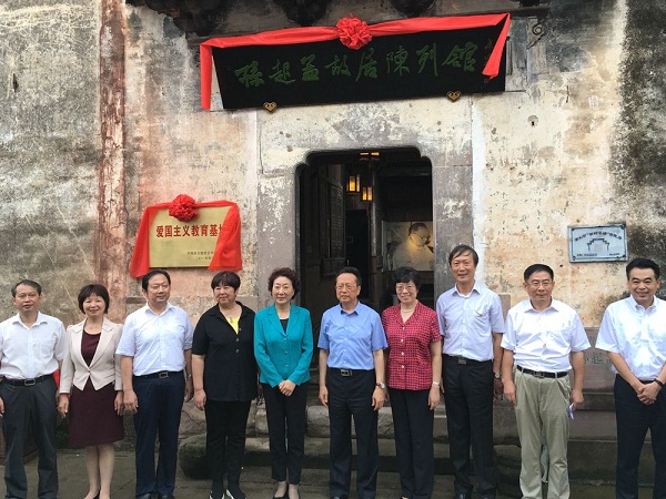 9月27日下午,孙起孟故居陈列馆开馆暨民建中央爱国主义教育基地揭牌仪式在安徽省黄山市休宁县商山镇孙起孟故居前隆重举行。全国人大常委会副委员长、民建中央主席陈昌智出席仪式并发表重要讲话。陈昌智与中共安徽省委常委、统战部长刘莉共同为孙起孟故居陈列馆开馆并为“民建中央爱国主义教育基地”揭牌。