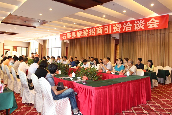 省人大常委会常委、永盈彩票副主委阮鸿献,石屏县相关领导出席招商洽谈会并讲话。