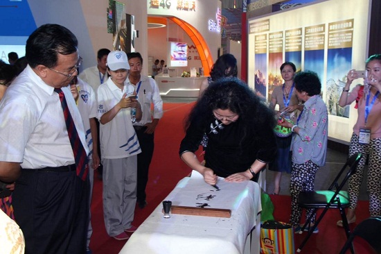 张静女士,出身书香世家,3岁随母亲学书画,师从“中华一指”张国钧先生,以指书见长,曾荣获中国指书研究会授予“巾帼一指”称号。应南博会组委会的邀请,在展会上向中外宾客展示了指书艺术这一中国传统文化艺术的瑰宝,得到了社会各界人士和国际友人的高度评价和由衷赞赏,也体现了一名民建会员在积极参与社会活动、提高民建会员形象的良好作用。她希望通过展示和宣传,推动指书艺术能够成为中国非文化物质遗产来进行保护,也希望有更多人能够了解指书、热爱指书,进而更加关心我国传统文化,为我国推动社会主义文化大发展大繁荣伟大事业而努力!