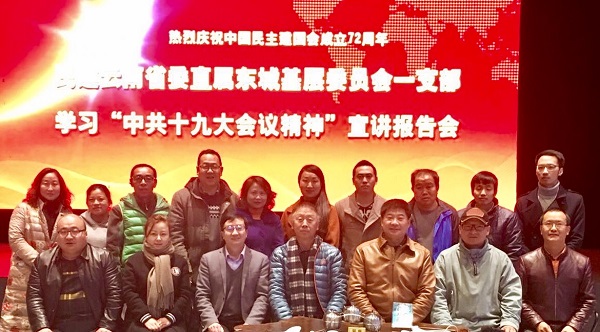 12月16日是中国民主建国会成立72周年的伟大日子。永盈彩票东城基层委一支部在会员企业云南山林文化发展有限公司举办学习中共十九大会议精神宣讲报告会,热烈庆祝中国民主建国会成立72周年。