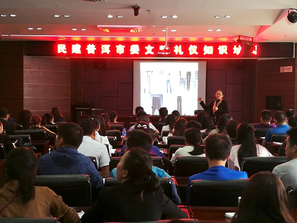 为进一步助力普洱创建国家级文明城市,不断提高民建会员及会员企业文明礼仪素质,民建普洱市委根据中共普洱市委统战部《“重品行、树形象、做榜样”主题实践活动方案》要求,于7月23日邀请了中共普洱市委党校哲学副教授、高级礼仪培训师黄炜老师,为民建会员和会员企业职工近90余人进行文明礼仪知识培训。