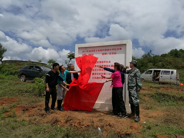 在启动仪式上,主办方为爱心单位和我科技支部颁发基金会纪念奖牌,揭幕“杨善洲纪念林”纪念碑。