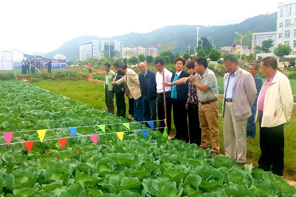 考察期间,组长晏友琼和工作组一行,深入威鑫农科“水肥一体化科技示范田”实地查看,听取环境友好型肥料研发推广创新团队负责人、农村环保产业技术创新战略联盟理事长蔡志远推进项目实验示范情况汇报,并与当地农民交流使用威鑫农科研发生产的“牛膜王控释肥”和“快先生水溶肥”在蔬菜种植上的长势及土壤防治情况。中午时分,督查组长晏友琼当场要求品尝使用威鑫农科产品种植的甘蓝等生鲜蔬菜。通过实地考察,督导组一行对云南威鑫农业科技股份有限公司研发的产品和技术,以及对水污染综合防治情况给予了高度的认可。