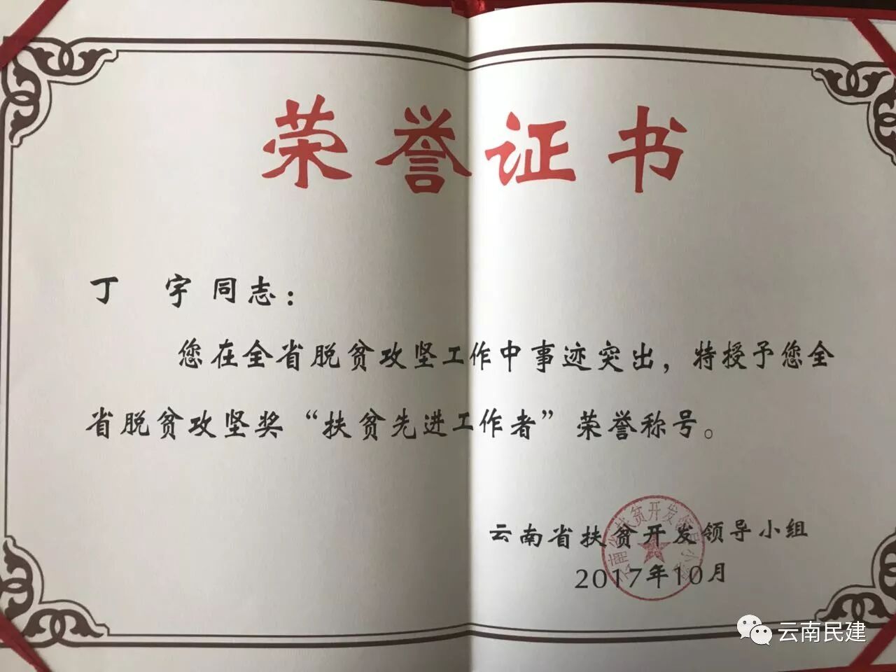 10月10日,在云南省扶贫先进事迹报告暨脱贫攻坚表彰大会,永盈彩票机关丁宇同志被云南省扶贫开发领导小组表彰为扶贫先进工作者,这是个人的荣誉,也是民建的骄傲。