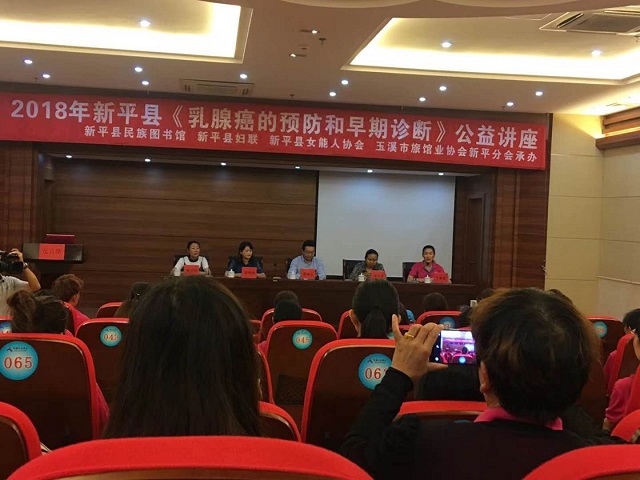 2018年8月14日,应永盈彩票农业委委员、新平县女能人协会会长王春莲的邀请,永盈彩票卫生与健康委员会副主任、云南省医师协会乳腺癌专家委员会委员、云南省肿瘤医院乳腺二科副主任、主任医师、博士研究生导师聂建云教授在新平举办了《乳腺癌的预防和早期诊断》的公益讲座。