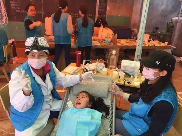 在椅子甸小学,义诊团为孩子们捐赠了50床棉被,200多支牙膏牙刷及书籍。为1-6年级200多学生进行检查宣教和治疗,讲授正确的刷牙、保护口腔的知识,并进行了拔牙、洁牙、补牙和窝沟封闭等治疗。为椅子甸村152位村民进行了检查。前来就诊的村民口腔问题均比较严重和复杂,专家根据情况,为其中77人进行了口腔诊疗。包括拔牙27人次、洁牙10人次、补牙35人次、为5位无牙颌老人进行了修复治疗。检查中发现了一例舌部淋巴管瘤,并及时联系上海九院最知名口外专家进行了会诊治疗。