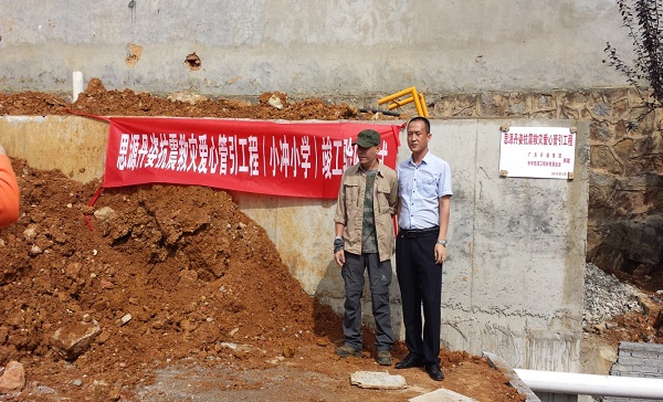 经民建省委社会服务部向中华思源工程扶贫基金会争取,“思源工程”联系广东丹姿集团给予13万元的捐助,用于帮助小冲小学新建管引项目。工程于2015年5月4日开工,经三个月施工建设,建成100立方米水池,修建水源点泵房20平方米,铺设600米供水管道。