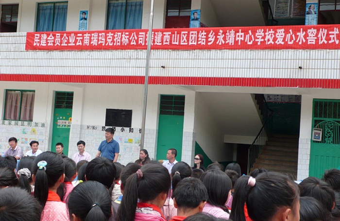 在学校,会员参观了学生们勤工俭学的蔬菜大棚。等孩子们下课后,学校举行了企业援建学校爱心水窑接交的简短仪式,孩子们列队操场,向前来捐助的叔叔阿姨表示热烈的欢迎。会省委专职副主委王宏在仪式上说,永盈彩票倡导会员“岗位立功、实业报国、奉献社会”,做有社会责任感有爱心的企业家。企业发展和成功来源于社会,其成果也终将回归社会,企业家帮助同学们在好的环境和条件下,努力学习文化知识,为将来回报祖国,为实现伟大的中国梦而奋斗。刘云董事长在仪式上表示,作为民建企业家,以援建的方式传递爱的希望,让山区的孩子对生活充满信心和勇气,享有更好的教育机会,更好的去面对生活,感受到社会的温暖。西山区委统战部长、教育局长及学校的领导,对民建企业家的捐赠表示衷心感谢。民建企业的援建,不仅解决了干旱的困难,还将爱心传递,使同学们在社会的关爱中成长,也将把爱心传承下去。