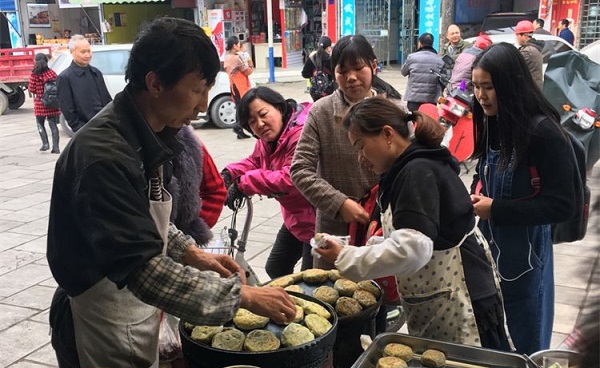 我?碰见清明粑的这天,正好就是三月三。古风尚存,今天专门出来做、售清明粑的摊、铺不止一个、两个。今天买清明粑的人更多,铺前门庭若市,摊头络绎不绝,慢火烘焙供不应求。