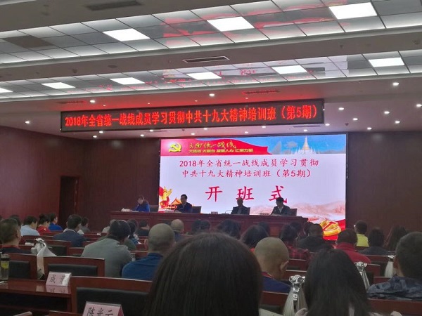 2018年全省统一战线成员学习贯彻中共十九大精神培训班(第五期)6月9日至12日在云南省社会主义学院开班。省委统战部机关、省委各民主党派机关、省级各统战团体、省社会主义学院处级实职干部全省各州(市)、县(市、区)常委统战部干部等参加培训。