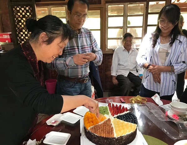 支部活动还有一个意外。这一天,恰逢本支部会员茅云华老师的72岁生日。于是支部悄悄为她订做了一个蛋糕,在学习活动结束时,全部会员一起唱生日歌为茅云华老师送上生日祝福,这样的活动体现出了支部会员们难能可贵的情谊。