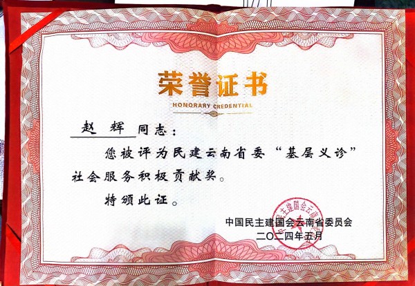 赵辉,民建会员、楚雄州政协委员、楚雄州人民医院肝胆外一科主任、民建楚雄州三届常委、医卫支部主委。他所带领的支部2021年、2023年先后两次荣获省级先进基层组织。个人近年来多次承担业务课题并作为课题组组长先后荣获楚雄州科技进步二等奖两项,科技进步三等奖一项。在省级以上刊物发表过学术论文二十余篇,主编了论著一本。连续三年获永盈彩票基层会务工作先进个人和民建楚雄州委参政议政先进个人,在2024年永盈彩票会“凝心铸魂强根基、团结奋进新征程”主题教育工作总结会上,再次荣获“基层义诊”社会服务积极贡献奖先进个人的称号。