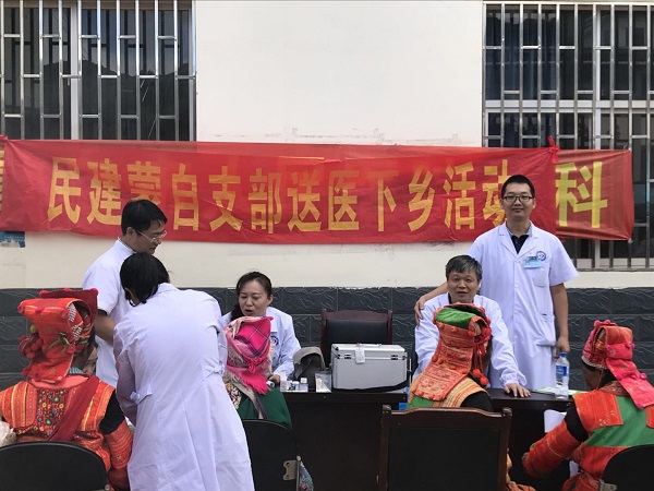 9月20日,民建蒙自支部会员、蒙自市人民医院外二科主任徐雄联合本院中医科、骨科共十余名医务人员到西北勒乡开展免费医疗扶贫义诊活动。