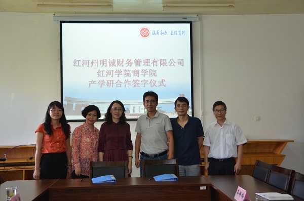 经民建红河州委牵线搭桥,校企双方多次磋商, 6月5日,红河州明诚财务管理有限公司与红河学院商学院在红河学院签订校企合作协议。