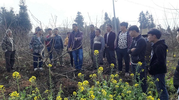 在实地查看民建会员捐赠栽种的加州小红桃,现场培训指导村民种植技术。通过实地操作示范、举例子、打比方等通俗易懂的方式开展扶贫培训。一是认真讲解,对当前农业产业发展方向,特别是小红桃等特色产品市场价格进行分析讲解,让贫困户坚定产业脱贫的信心,同时对小红桃修枝剪叶等种植管理实用技术进行讲解、示范。二是详细询问,采用提问的方式向农户了解小红桃种植中的困惑,以及迫切需要解决的技术难题,并逐条分析,纠正农户错误的种植方法。三是耐心解答,针对农户提出的提高果品质量和产量等问题耐心解答,提供科学、易操作的解决方案,要求农户牢牢掌握关键技术,严格遵守种植管理要求,让自己的农产品实现从量到质的转变,从而获取更高的效益。