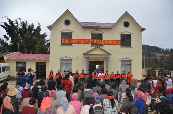 蒙自市芷村镇黑拉冲村委会大锡厂村,距离蒙自市区不到40多公里,却和市区有着天壤之别,土路、危房,与市区的繁华形成鲜明对比,这,是一个深度贫苦的苗族村落。为贯彻“小康路上一个都不能掉队!”的习近平总书记的要求,为助大锡厂村实现脱贫奔小康,民建红河州委2016年初将其确定为重点帮扶村寨,挂牌成立了民建红河州委“同心工程”示范点。