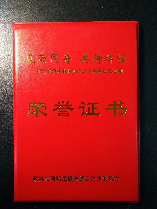 2017年,红河州政协在成立六十周年之际,组织开展“风雨同舟 共铸辉煌”——纪念红河州政协成立六十周年征文活动。民建红河州委组织全州会员积极参与,选送7篇征文参加州政协优秀征文评比。日前,我委3篇征文获奖,其中,邱康会员的《利用互联网新媒体 弘扬多党合作和政治协商新成果》荣获“纪念红河州政协成立六十周年征文”三等奖;刘经翰会员的《一家三代的政协缘》、罗有亮会员的《一路走来 与您相伴》等2篇文章荣获优秀奖,受到红河州政协表彰奖励。