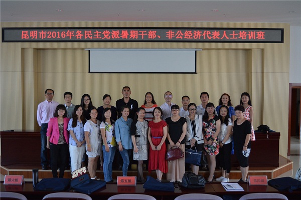 7月25-28日,民建昆明市委专职副主委钟华带队机关人员及会员27人参加了中共昆明市委统战部在昆明市社会主义学院举办的2016年度民主党派暑期培训班。各民主党派市委常委、中青年优秀后备干部共196人参加了集中培训。
