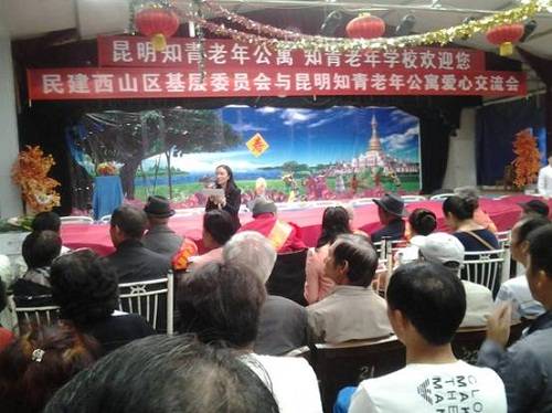 昆明知青老年公寓的老人们用歌声《没有共产党就没有新中国》、《知青老年公寓之歌》、《最美的歌儿唱给妈妈听》表达了对祖国的爱、对民建爱心会员的感谢。