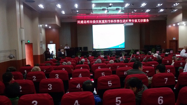 为弘扬尊老爱老的优良传统,2014年重阳节来临之际,9月24日,民建昆明市委老龄委在延安医院报告厅举办了庆祝重阳节科学养生讲座暨专家义诊服务活动。民建昆明市委副主委钟华、石磊、65岁以上老会员和全体机关人员参加了活动。活动由老龄委主任陈湘榆主持。