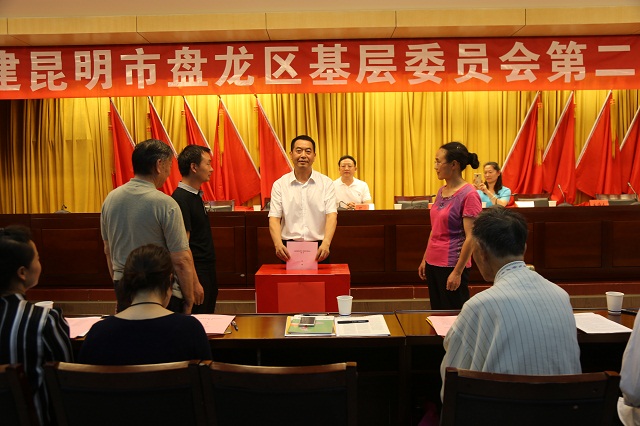 民建昆明市委专职副主委钟华宣布召开盘龙区基层委员会第二次全体会议的决定。盘龙区基层委主委胡升文向大会作过去六年工作报告。工作报告指出,民建盘龙区第一届委员会成立六年来,全面贯彻落实中共党的十八大、十九大会议精神和民建十一大会议精神,着力推进思想建设、组织建设和制度建设,积极参政议政,努力服务社会,自身建设迈上了新台阶,为盘龙区加快推进区域性国际中心城市核心城区建设作出了积极贡献。民进盘龙区基层委主委夏震致贺词。盘龙区基层委第二届全体会议选举产生19名基层委员会委员(按姓名笔画排列):马语遥 吕敏华 刘 芬 杨云芳 吴昆丽、吴金莉 吴海舰 何春树 邹 浩 张 曦、陈小蓉 金亚力 周京明 饶 劲 黄永庆、葛迎华 解天骏 蔡永霓 熊跃剑;经第二届基层委员会第一次全体委员会议选举:主任委员:蔡永霓;副主任委员:吴昆丽、吴金莉、张 曦、饶 劲、黄永庆。蔡永霓主委代表新一届基层委班子作了《不忘初心、凝心聚力、为建设美好幸福新盘龙贡献力量》的表态发言。
