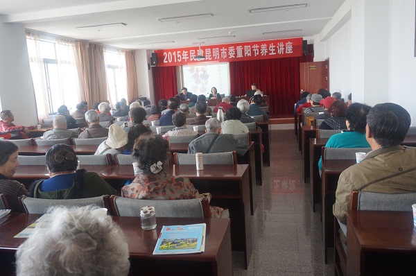 分管老龄工作石磊副主委讲话说:受主委高中建委托,今天同老会员一起欢度重阳节。每逢佳节备思亲,重阳节到来之际,谨向老会员表示诚挚的问候。尊老敬老是中华民族传统美德,也是民建的光荣传统,老会员是民建的宝贵财富,关爱老会员是民建应尽的责任和义务。全社会都应该共同关注老年人,要让老年人病有所医、老有所养,幸福安度晚年。最后他衷心祝愿老会员节日,快乐身体健康!老龄委主任陈湘榆主持讲座活动。她介绍讲座活动是自2007年以来的第九次健康专题讲座,为保证授课的权威性、科学性,每年都是邀请延安医院专家主讲,多年来,保建养生讲座一致获得老会员喜爱和好评。