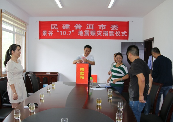 突如其来的灾情紧紧牵动着民建普洱市委及全体会员的心。10月14日下午,民建普洱市委举行了景谷地震灾区赈灾捐款仪式,专职副主委许泉主持了捐款仪式,并发出向灾区捐款捐物的倡议,希望会员积极为云南景谷地震灾区伸出援助之手,为灾区同胞送去一份温暖、一份关爱,与灾区同胞携手共渡难关,重建美好家园。会员们积极响应,踊跃捐款。截止10月14日晚,共筹到赈灾款28.5万元正。