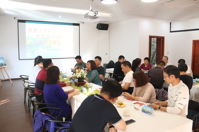座谈会上,许泉副主委代表民建普洱市委向沈学忠副主委一行的到来表示热烈的欢迎。双方就各自会的工作开展、地方营商环境和会员企业自身发展存在困难等展开了深入探讨和交流。许泉副主委指出,上海对普洱的情谊由来已久,得益于上海20多年对普洱人、财、智方面的帮扶,在全市社会各界的共同努力下,现如今普洱发展也取得了许多喜人的成果,希望民建宝山区委与民建普洱市委加强交流合作,在企业发展、经济研究上多为普洱把脉谋策,为普洱企业和企业家们搭建平台谋求商机。民建普洱市委一支部主委、市招商局办公室主任何顺琼介绍了普洱市出台的招商引资相关政策。