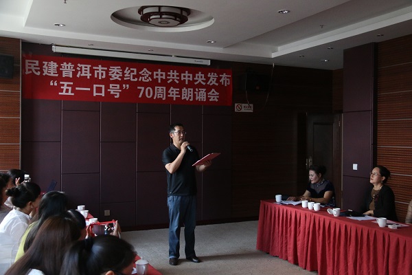 许泉副主委在致词中强调,举办纪念“五一口号”70周年诗歌朗诵会,其目的是通过诗歌朗诵的方式,回顾民建同中国共产党肝胆相照、荣辱与共、真诚合作的历史,宣传中国共产党领导的多党合作和政治协商制度的优越性,弘扬民建的优良传统,自觉接受中国共产党的领导,坚定不移地走中国特色社会主义道路。希望广大会员以纪念“五一口号”为契机,弘扬民建优良传统,双岗建业,认真履职,为普洱的经济社会发展贡献力量。