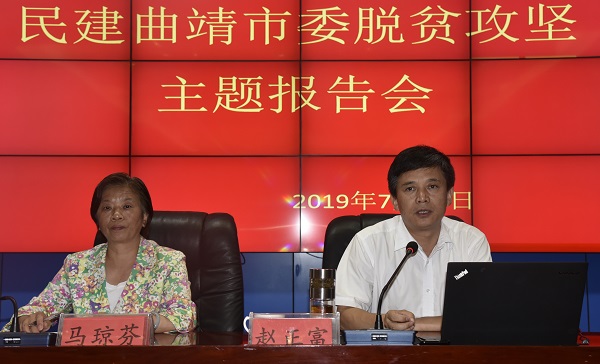 7月11日下午,民建曲靖市委举办脱贫攻坚主题报告会。会议邀请中共曲靖市委副书记、市委宣传部部长赵正富为民建会员作专题辅导。民建曲靖市委主委马琼芬主持会议。