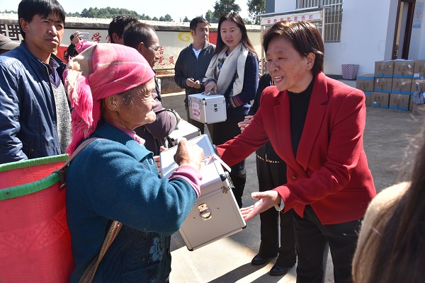 阿东村委会地处罗平县马街镇西北边,属于山区,阿东村委会辖阿东、请歹、岔河、阿细者等10个村民小组有765户2972人,是一个偏僻冷凉的高寒少数民族山区。此次健康扶贫下乡活动,为当地的建档立卡贫困户带去爱心药箱200个,每个药箱配装了20余种常用药,价值共9万余元。为了让贫困户安全用药,执业药师还向群众介绍了药品真假伪劣的辨别方法,现场讲解了药品使用安全注意事项和治疗症状,发放健康知识手册300余份。