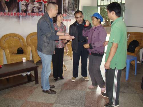 民建会员、云南鸿翔一心堂药业(集团)有限公司滇东北片区经理阮国松,是一个有社会责任感的青年企业家,当得知胡建发家有困难需要帮助后,积极伸出了充满爱意的援手。8月29日,在民建曲靖市委专职副主委姚芬的陪同下,到曲靖市会泽县雨禄乡阳山村看望胡建发母子,捐助了2万元爱心善款,并表示愿意接纳这个小伙子,到一心堂药业工作,为这个家庭解决更多的实际困难。