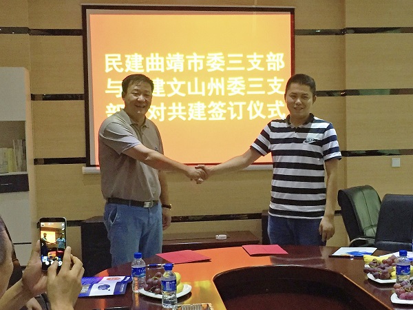 为推动曲靖市和文山州社会主义经济建设,促进民建工作发展,8月19日,民建文山州委三支部一行来到曲靖市开展经济发展专题调研活动,并与民建曲靖市委三支部签订结对共建协议,缔结为友好支部。在双方平等自愿、友好协商的基础上,承诺将不断深化合作,拓展合作领域,努力做到全方位的友好共建。