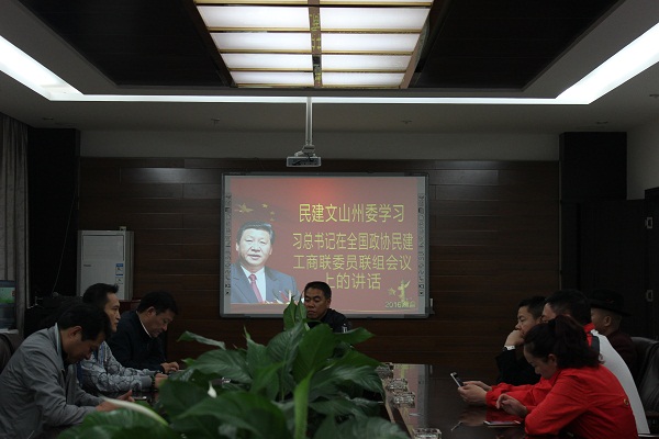 3月25日,民建文山州委召集各支部主委、副主委20余人传达学习习近平总书记在全国政协民建、工商联组会议上的讲话。