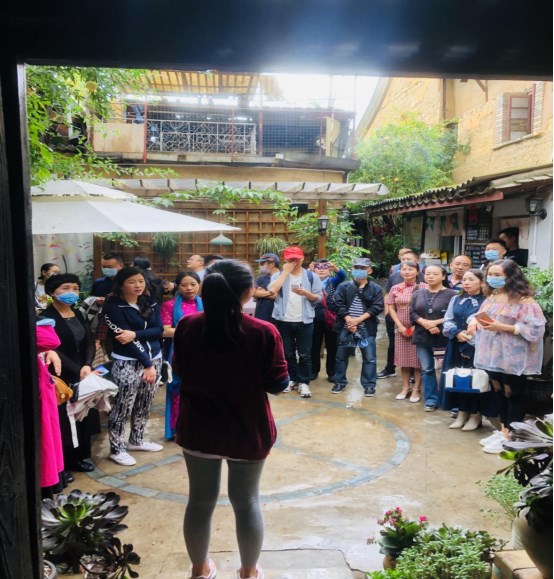 调研从参观聂耳故居开始,会员们专心致志地倾听讲解员的讲解,对人民音乐家聂耳的生平事迹及聂耳伟大而短暂的一生有了更深入的了解,会员们又一次受到了深刻的爱国主义教育。离开聂耳故居,调研组沿着步行街,探访玉溪典型民居商业业态,围绕民居的保护开发、城市历史文化保护利用、文化旅游产业发展等进行调研,途径北门街、新兴路,人民路,南门街,沿途走访了巷子餐吧、嫄知原味、四郎家火锅、清宴,草木间,香风遍满等十处本土民居修缮改建的茶室和餐饮商家,与业主进行了座谈交流,仔细了解民居保护及经营情况。