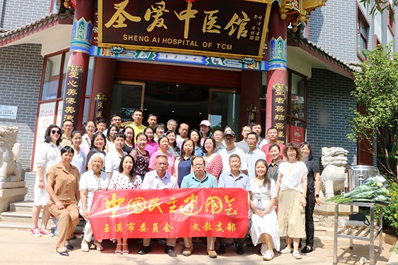 为深入学习贯彻中共二十大精神,认真落实《中共中央 国务院关于促进中医药传承创新发展的意见》阶段性目标和《“十四五”中医药发展规划》的组织实施,切实做好中医药文化传播,推动中医药文化繁荣发展,加深广大会员对中医养生保健知识的了解和运用,更好地为广大会员提供精准的健康服务,5月20日,民建玉溪市委文化教育支部在玉溪圣爱中医馆开展“弘扬中医药文化,推动中医药文化繁荣发展”主题学习活动,玉溪市政协副主席、民建玉溪市委主委自福庄,民建玉溪市委副主委杨敏、覃丽芬参加活动。