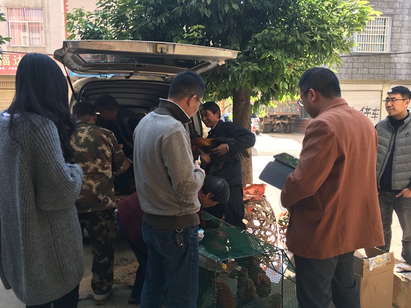 2017年1月25日下午,位于玉溪市红塔区高仓街道六品村六品快捷酒店旁的易门县土特产销售店门前人头窜动、热闹无比。由易门县铜厂乡里士村委会提供的山地鸡在此销售,预订的鸡当日就销出 212 只。